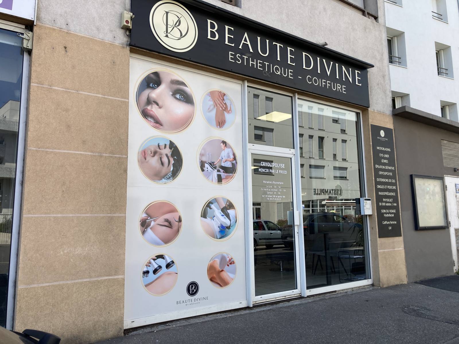 Réalisation d’un marquage adhésif publicitaire pour un institut de beauté – coiffure situé à Décines-Charpieu proche de Lyon.