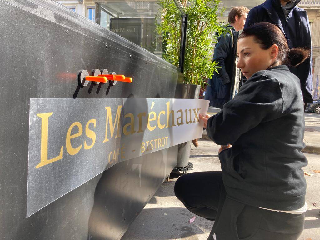 Pour ce café bistrot situé au centre ville de Lyon, où nous avions déjà réalisé un marquage sur vitrine, nous avons effectué une pose d’adhésif sur support aluminium.