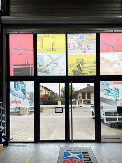 Pour cette société de commerce d’outillage située à Décines Charpieu près de Lyon pour laquelle nous avions déjà réalisé un panneau sur pied (voir annonce). Nous avons réalisé un marquage vitrine particulier.