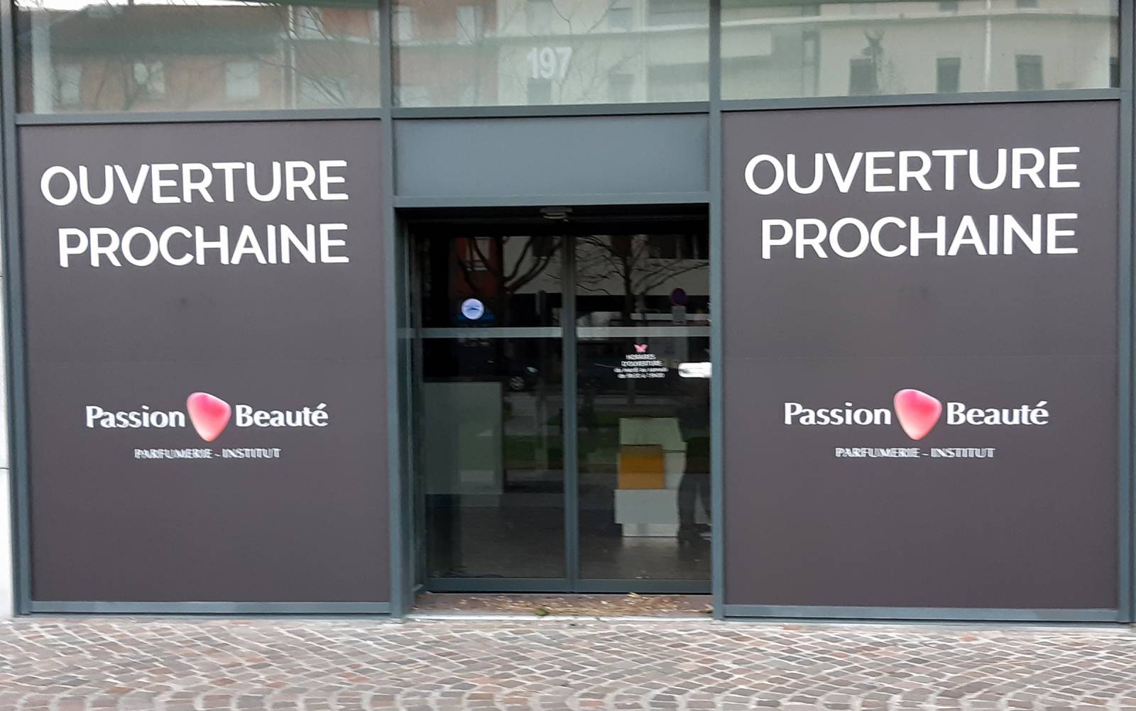 Réalisation d’un marquage adhésif publicitaire pour un institut de beauté – coiffure situé à Décines-Charpieu proche de Lyon.