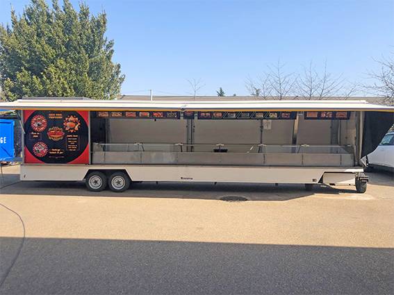 Pour cette remorque servant de food-truck qui se déplace et travaille principalement sur les marchés dont celui de Rilleux La Pape à Lyon, PLEXY SIGN a réalisé :