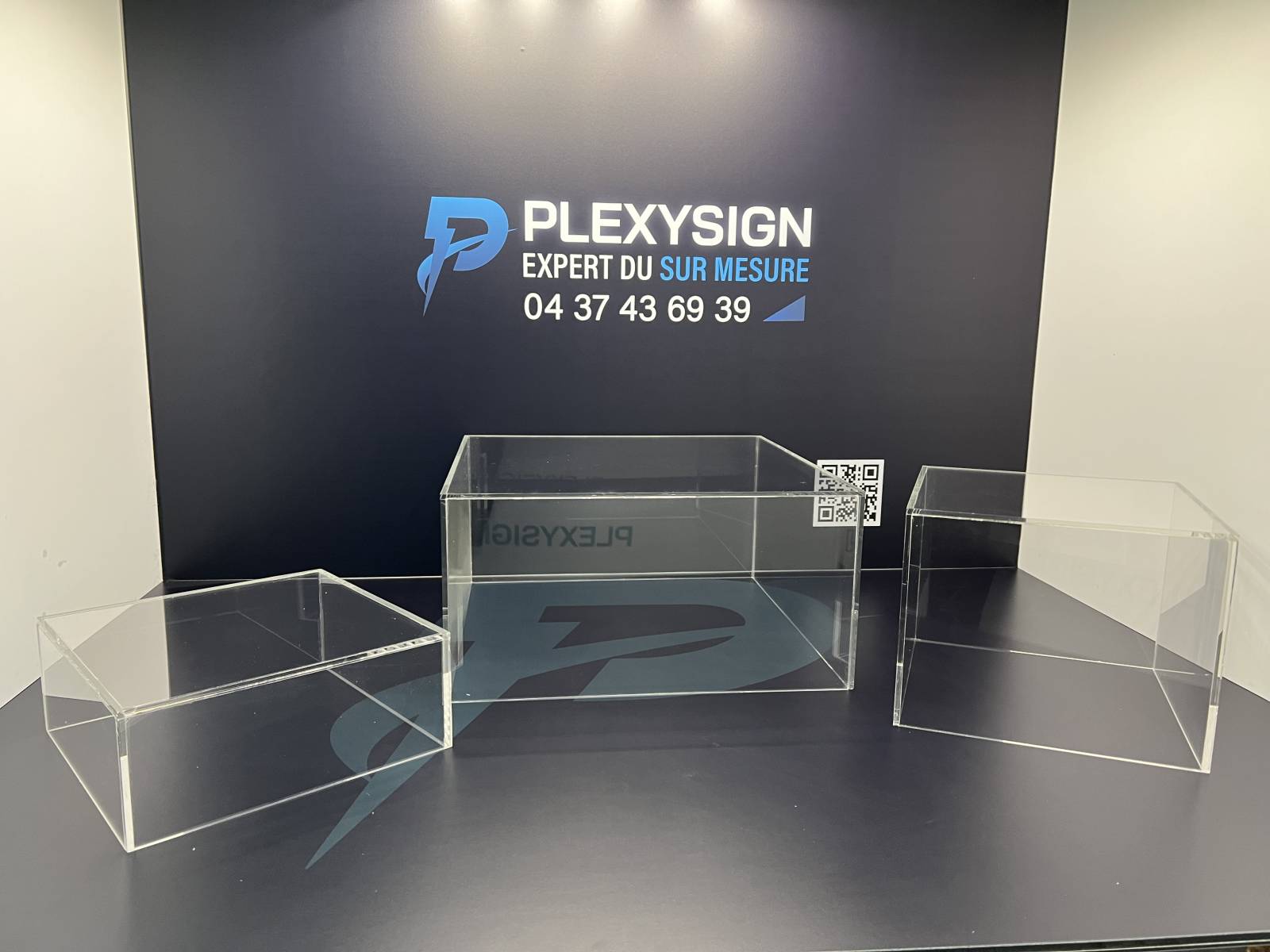 Boites, cloches et vitrines en plexiglas transparent ou fumé à Lyon
