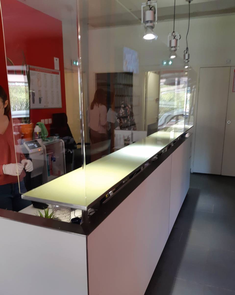 Nous avons étudié et réalisé des protections plexiglas hygiaphone Covid pour plus de 300 clients des services départementaux.. et pour tous les types de commerces, services et industrie: pharmacies, bureaux de tabac, restaurants, épiceries, surfaces commerciales, parfumerie, ambassades, industrie, bureaux d’étude …